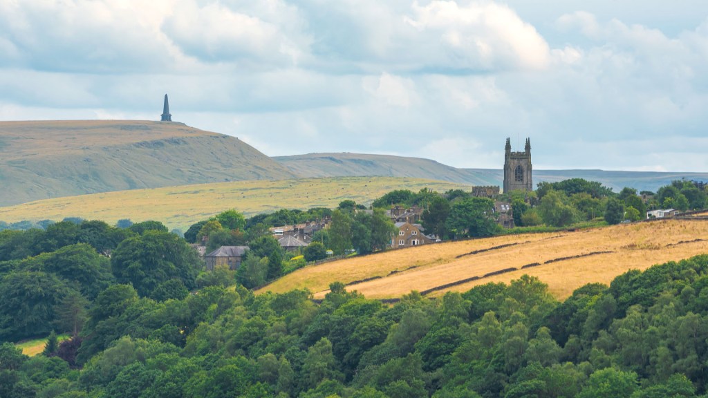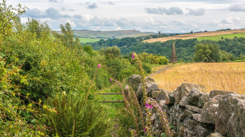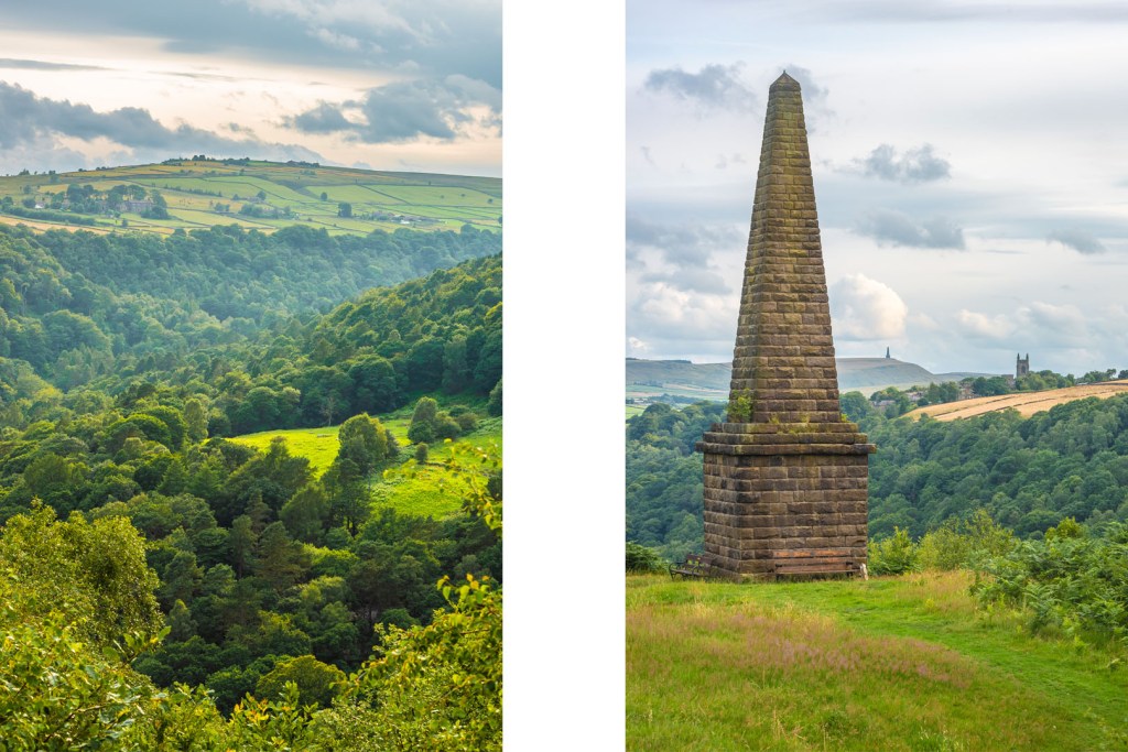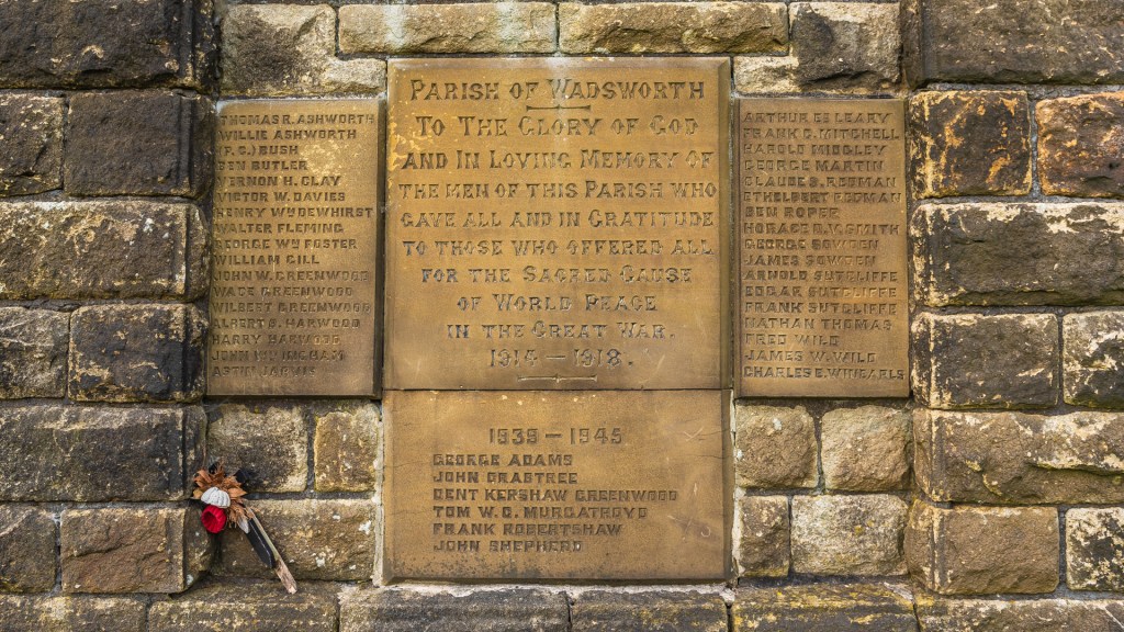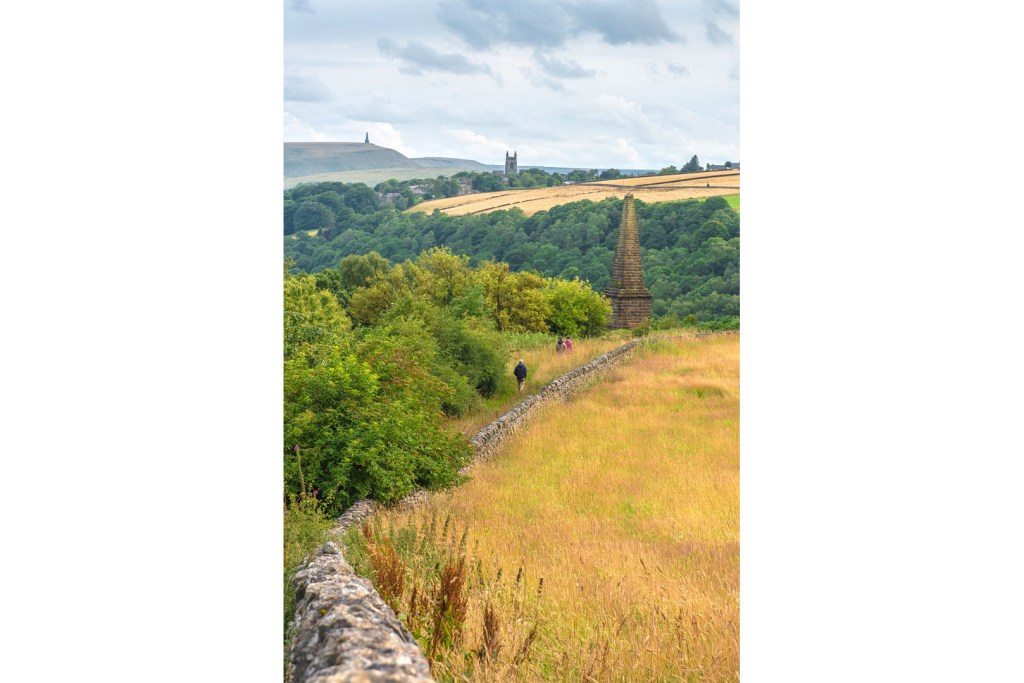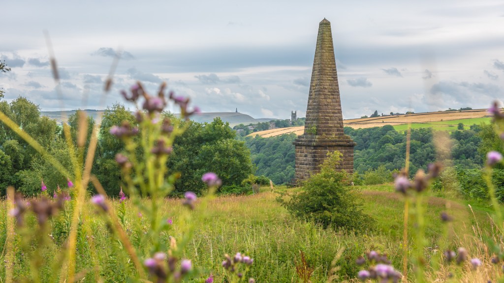 In a commanding position atop Smeekin Hill nearby stands Wadsworth War Memorial, a striking obelisk, its form reminiscent of the Napoleonic peace monument on Stoodley Pike, which can be seen in the distance from here.