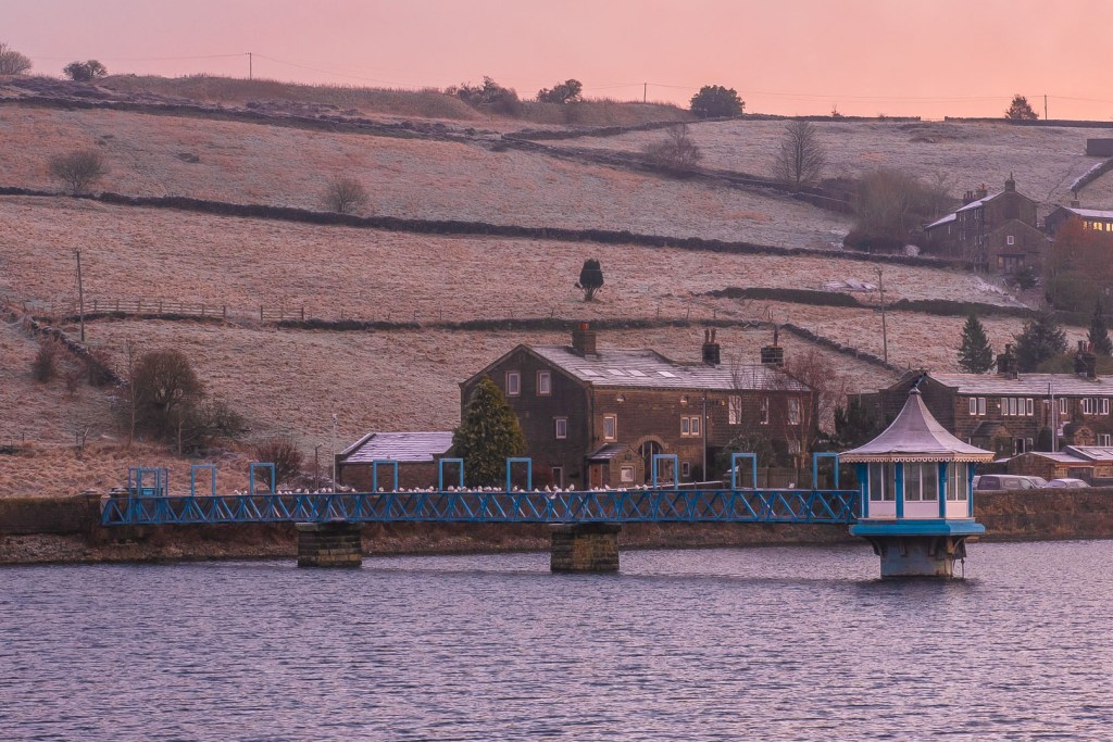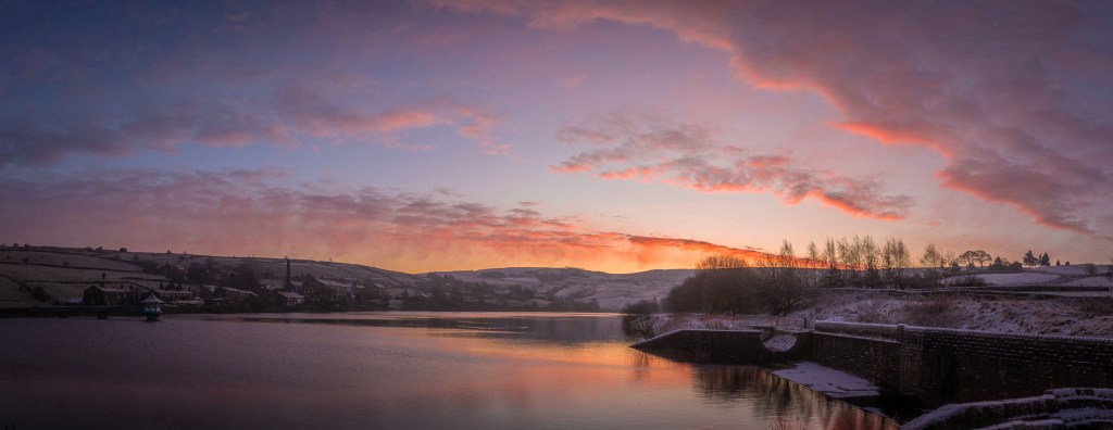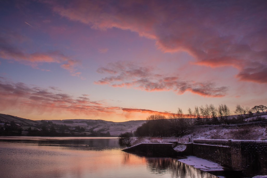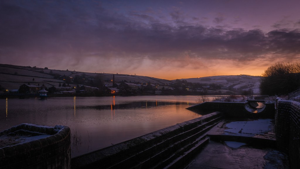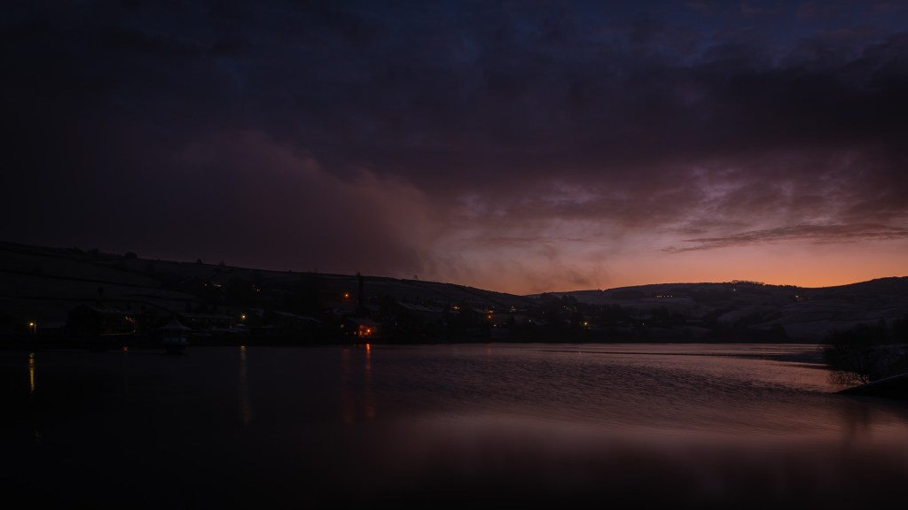 I’d originally planned to photograph the sunrise in Haworth but having had a wander round in the dark there, I had a feeling I needed to be somewhere with a better view of the sky, so I headed over to one of my favourite spots on the dam of Leeming Reservoir near Oxenhope.