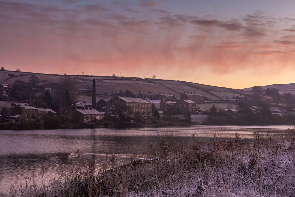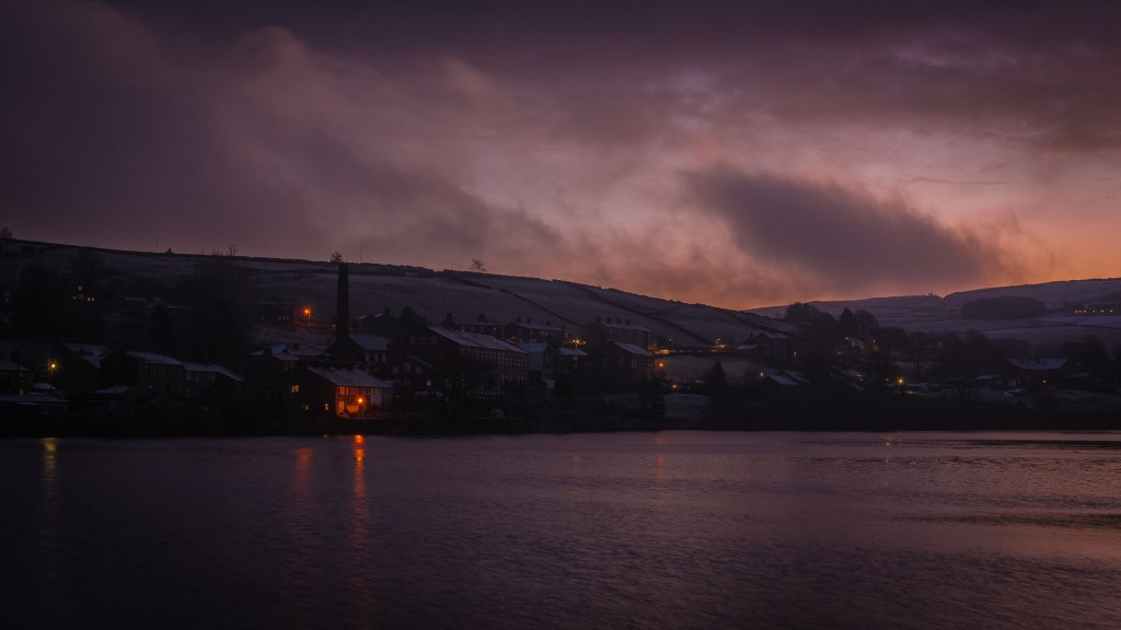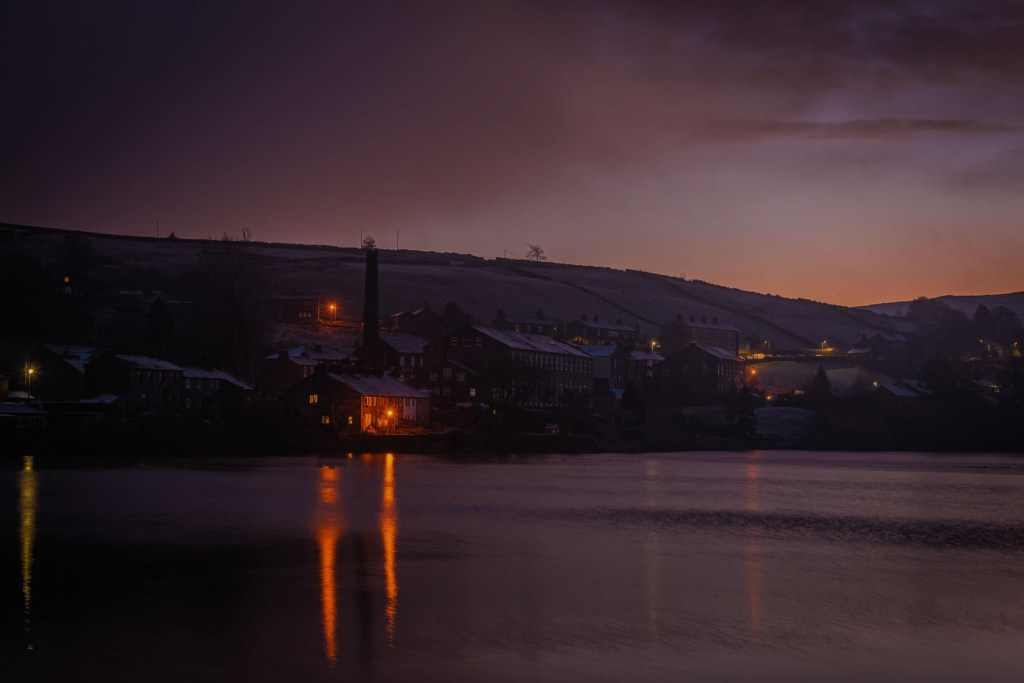 As the sun rose over the hills, moved up to Height Lane, overlooking the reservoir to watch as the now orange light crept slowly over the landscape.