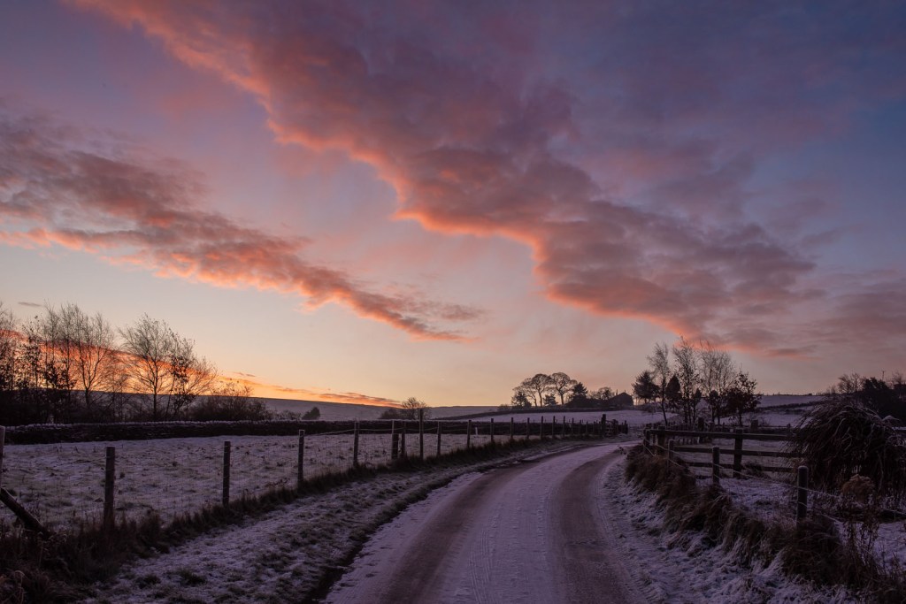 Sunrise was due at just before 08:00 and the temperature dropped noticeably to about -6C as the sun came up but in the preceding 20 minutes or so, I was treated to a beautiful salmon and lavender sky which, fleetingly, wrapped the whole scene in a cloak of pink light.