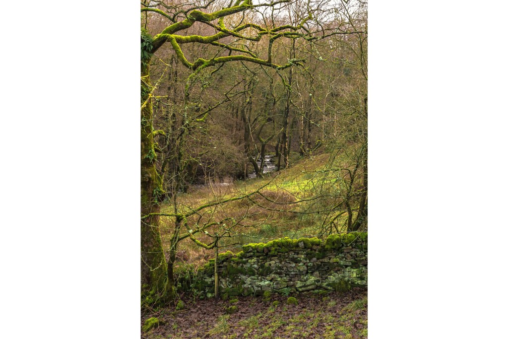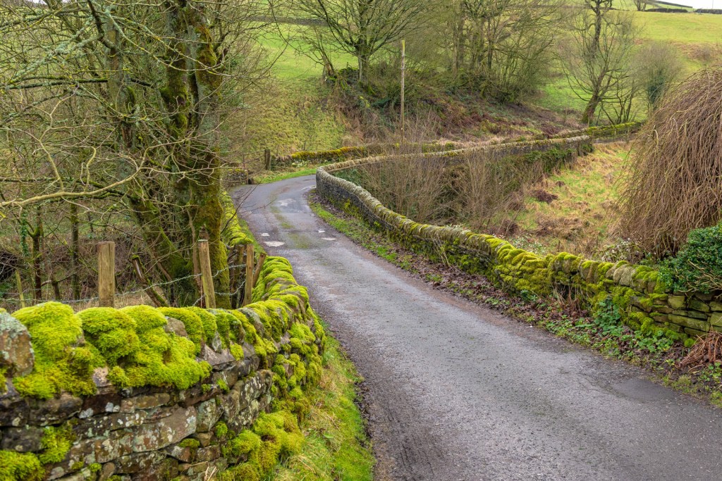 Mossy walls on the road to True Well Hall Farm and Carr Laithe
