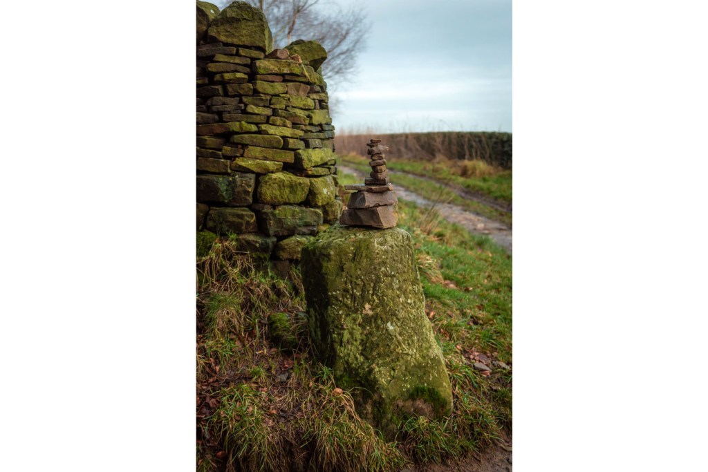 An example of the current craze for piling stones on top of stuff. This is an old waymarker stoneat the junction of White Lane, Willgutter Lane and Turnshaw Road
